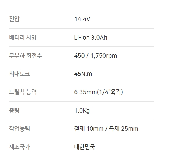 | Á¤°ÝÀü¾Ð | 14.4V | ¹èÅ͸® | - |