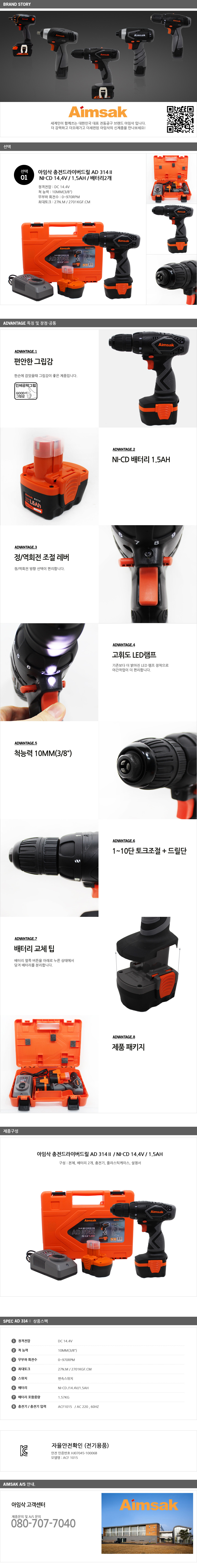 [¾ÆÀÓ»è] 14.4V ÃæÀü µå¶óÀ̹öµå¸± AD314II (Ç®¼¼Æ®/1.5Ah 2°³+ÃæÀü±â+ÄÉÀ̽º) |