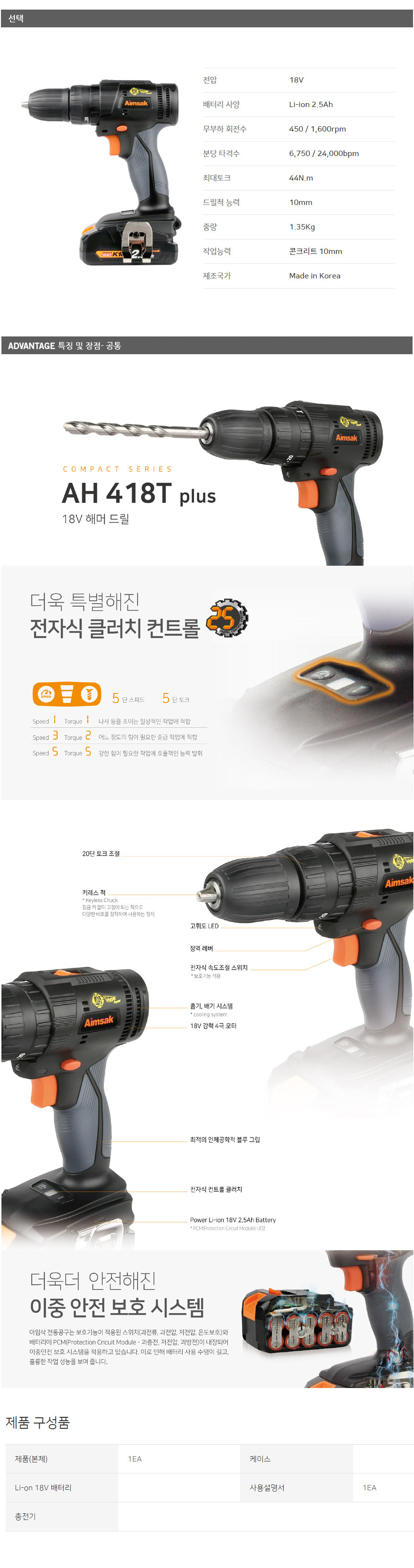 AH418T Plus(2B_2.5) | Ç®¼¼Æ® | 18V | 2.5Ah | 450/1600rpm | 11/12 (¼ö¿äÀÏ) | 217,273¿ø |